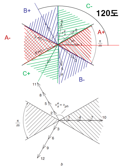 15. 그리고 A상 중심에서 120도 만큼 반시계로 이동하면 B상의 영역이된다. 나머지는 위 그림을 참고하자.