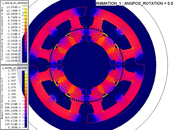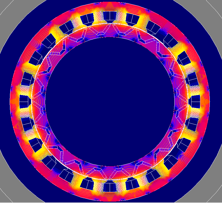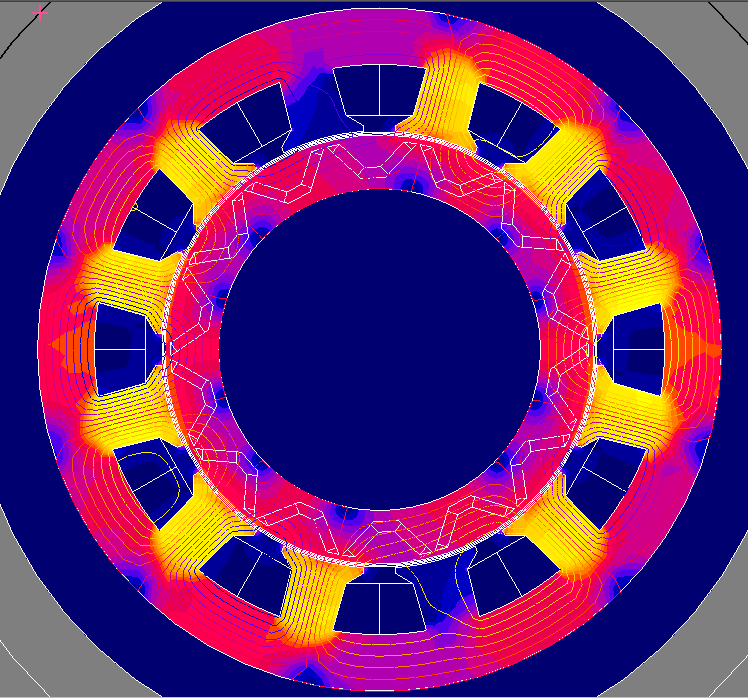 아래 그림은 4극 매입형 영구자석 동기전동기의 자기장 해석결과입니다.