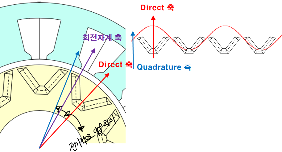 동기전동기에서는 회전자를 기준으로 d축과 q축이라는 것이 있습니다.