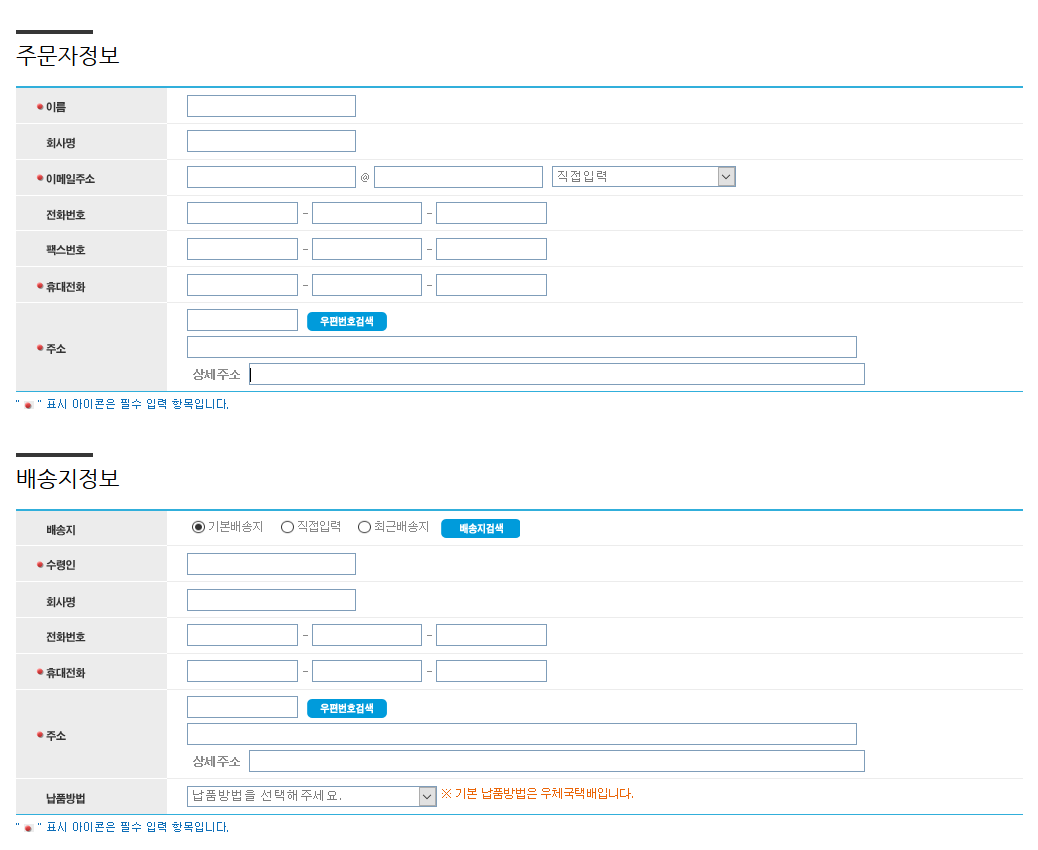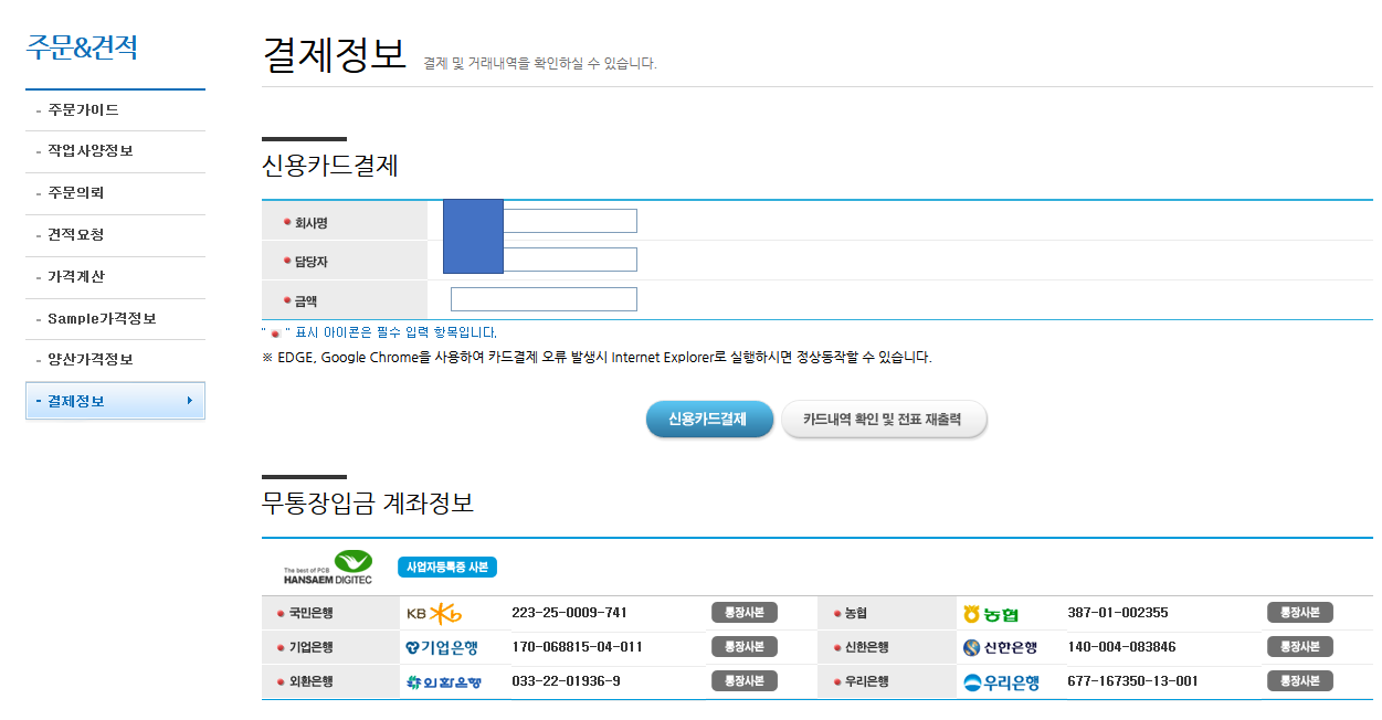 4. 주문&견적에서 주문의뢰 -> 주문서 작성으로 들어갑니다.